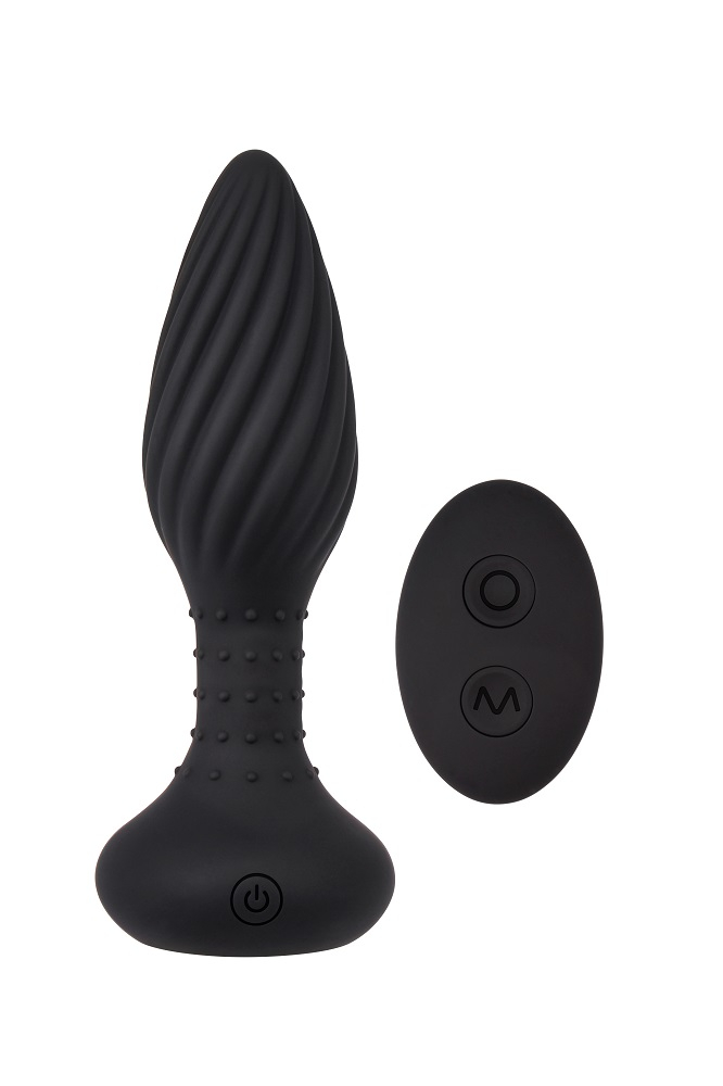Рельефный силиконовый анальный вибратор с пультом управления, имеет 10 режимов вибрации и 5 режимов вращения шариков в основании анальной втулки.