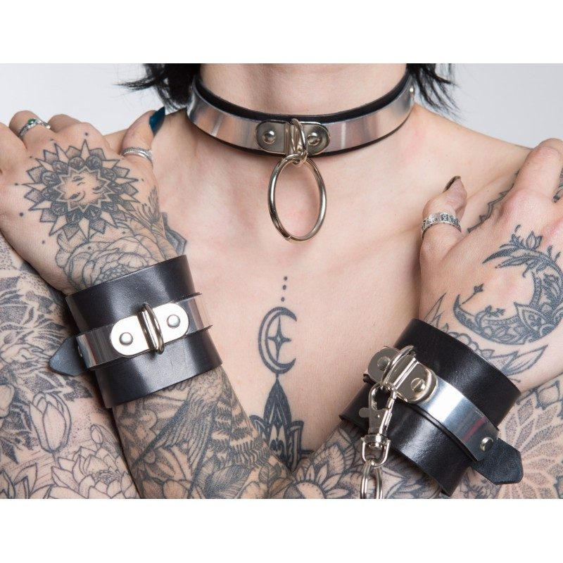 SET-40 Набор кожаные ошейник, наручники и наножники