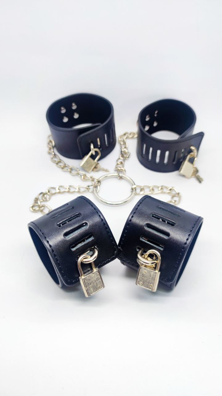 Комплект фиксации с манжетами на лодыжки и наручниками – отличный инструмент БДСМ.