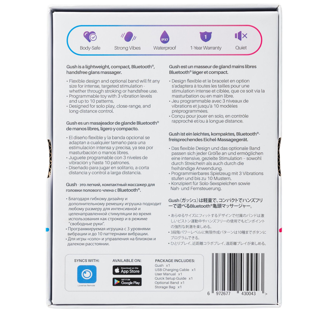 Выберете новый путь к оргазму, купите смарт вибро-мастурбатор для головки члена Lovense Gush, безупречного компаньона, способного удовлетворить все ваши желания. Эргономичный и компактный корпус средней жесткости из премиум силикона, с гибкими крылышками, идеально подойдет для мужчин с любым размером. Специальное эластичное кольцо в комплекте усиливает прилегание игрушки и обеспечивает надежную фиксацию на члене. 7 предустановленных режимов стимуляции и создание собственных, удаленное управление с помощью мобильного приложения Lovense Remote, передача контроля партнеру, синхронизация с интерактивными играми, полная водонепроницаемость — сногсшибательный чувственный коктейль из технологий, возбуждения и наслаждения.
