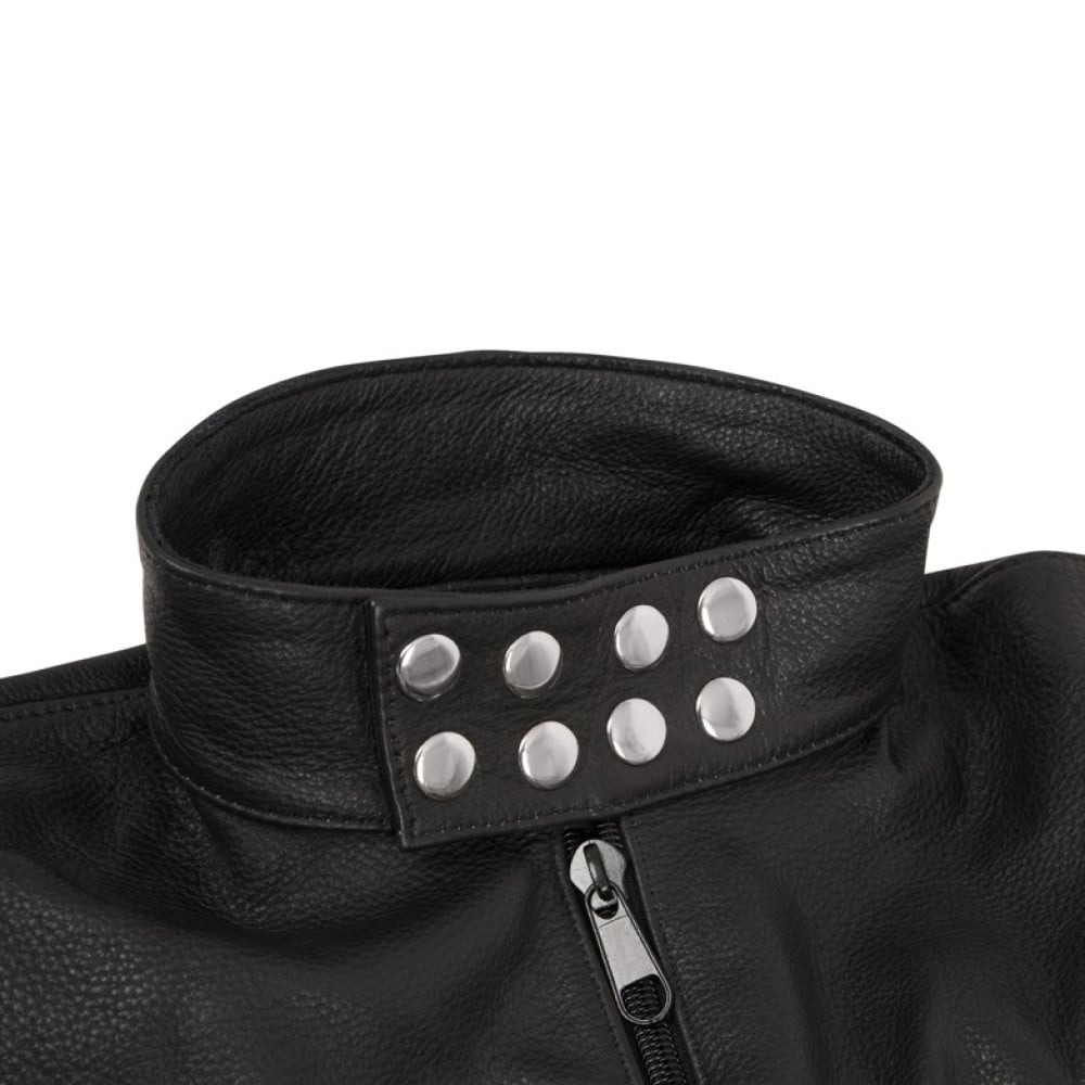 Выбирайте этот мешок, если желаете вдоволь насладиться контролем или подчинением! На воротнике-стойке размещены металлические заклепки и само изделие выглядит максимально эффектно.