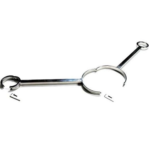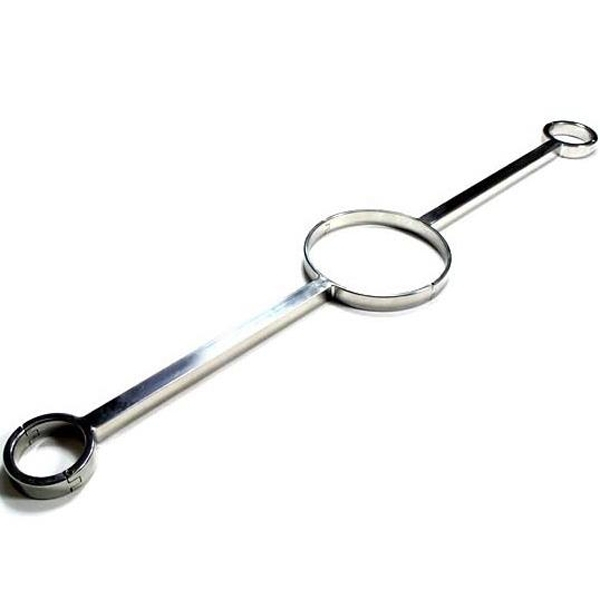 Бондаж, соединяющий шею и запястья рук. С помощью него руки партнера всегда будут подняты кверху. Он изготовлен из нержавеющей стали, что способствует его длительному использованию. Наш кузнец обычно делает фиксаторы вручную. Прилагается ключ к замкам и шестигранным винтам. Внутренний диаметр фиксатора шеи составляет 14,8 см, диаметры фиксаторов запястья 5,8 см, ширина 2 см, полная длина 86 см.