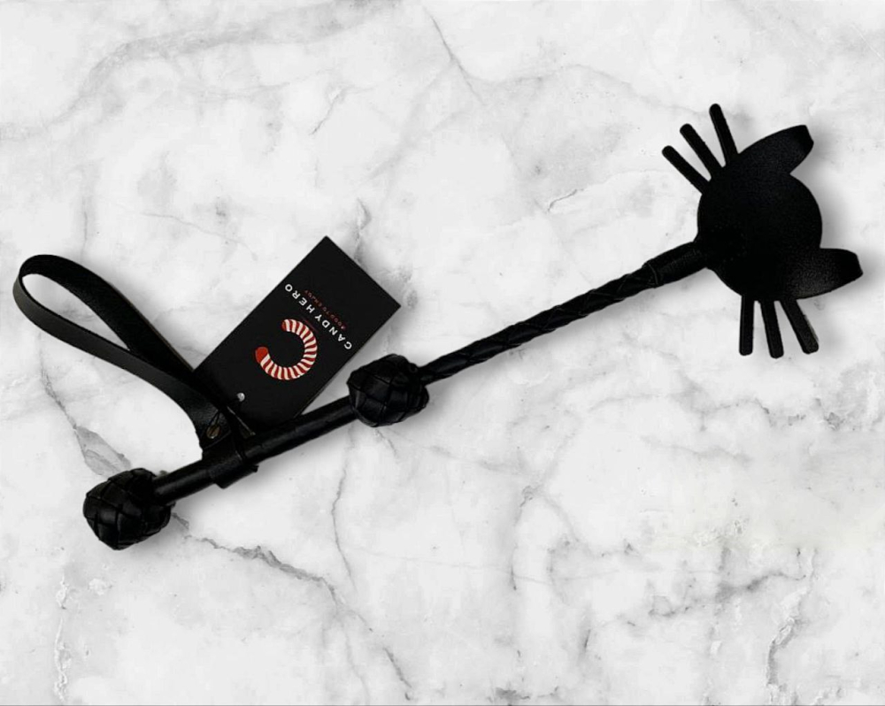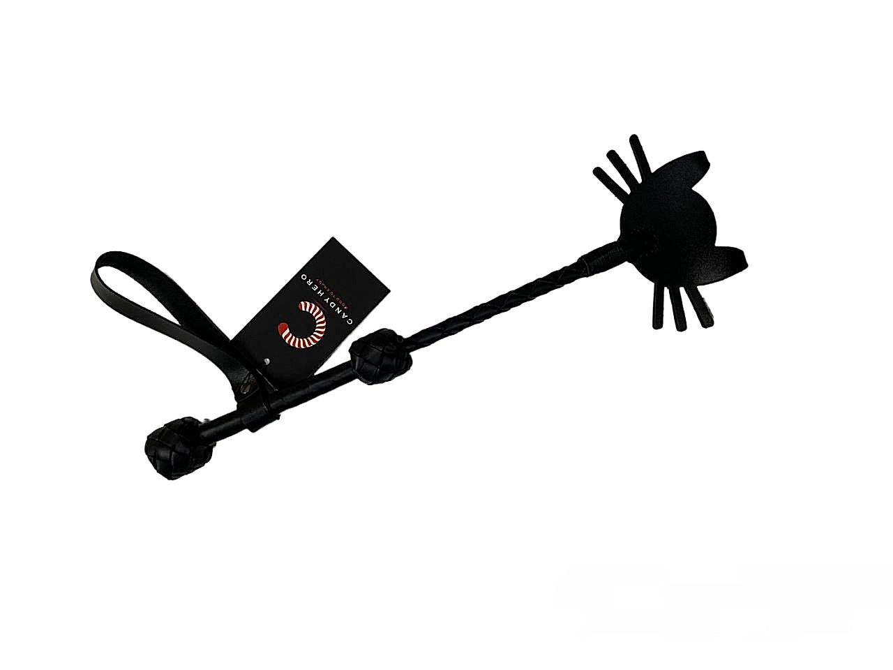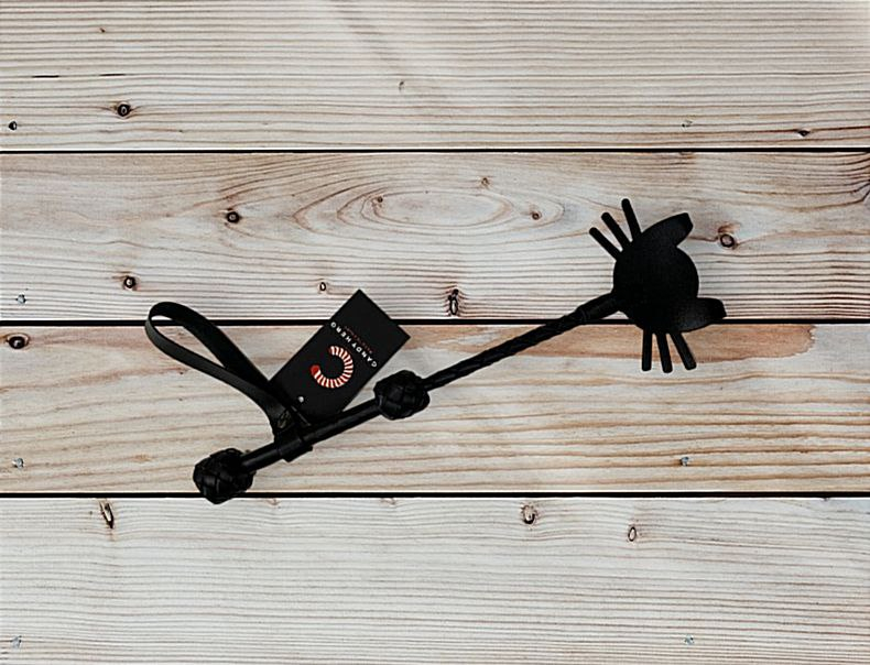 Стек для БДСМ-игры из кожи с петлей на рукояти черного цвета