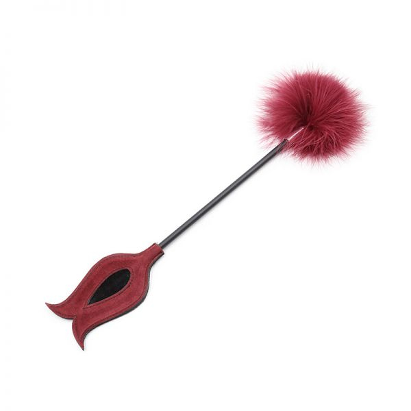 С одной стороны стека расположена плотная шлепалка в виде тюльпана, а с другой игривая метелочка из нежных перьев.