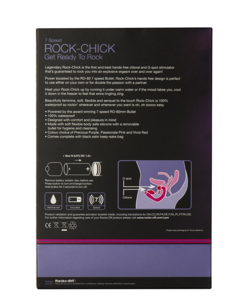 Легендарная модель недаром получила имя Rock-Chick («отвязная девчонка»). Это первый и самый лучший стимулятор клитора и точки G, не требующий участия рук. Rock-Chick не нужно подзадоривать. Отвязная девчонка будет двигаться и зажигать, пока вы этого хотите, принося вам оргазм за оргазмом!