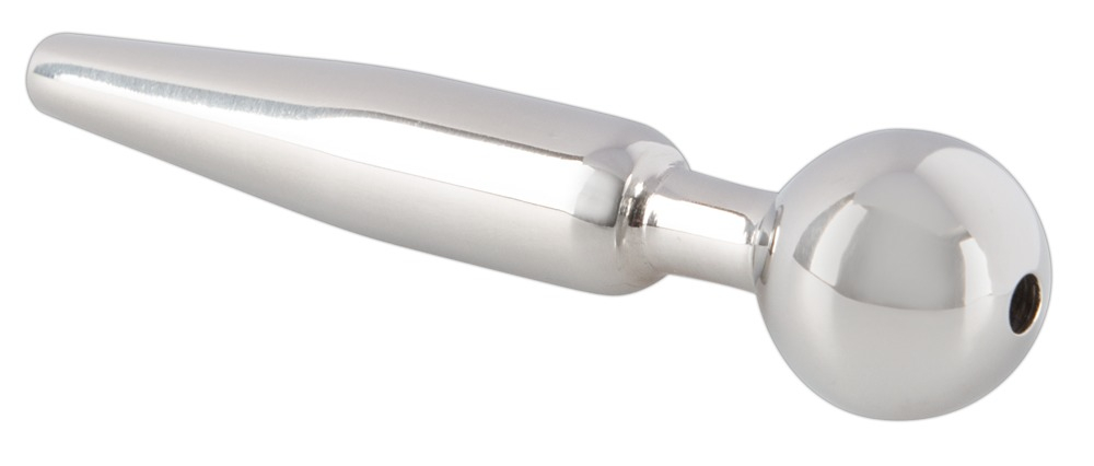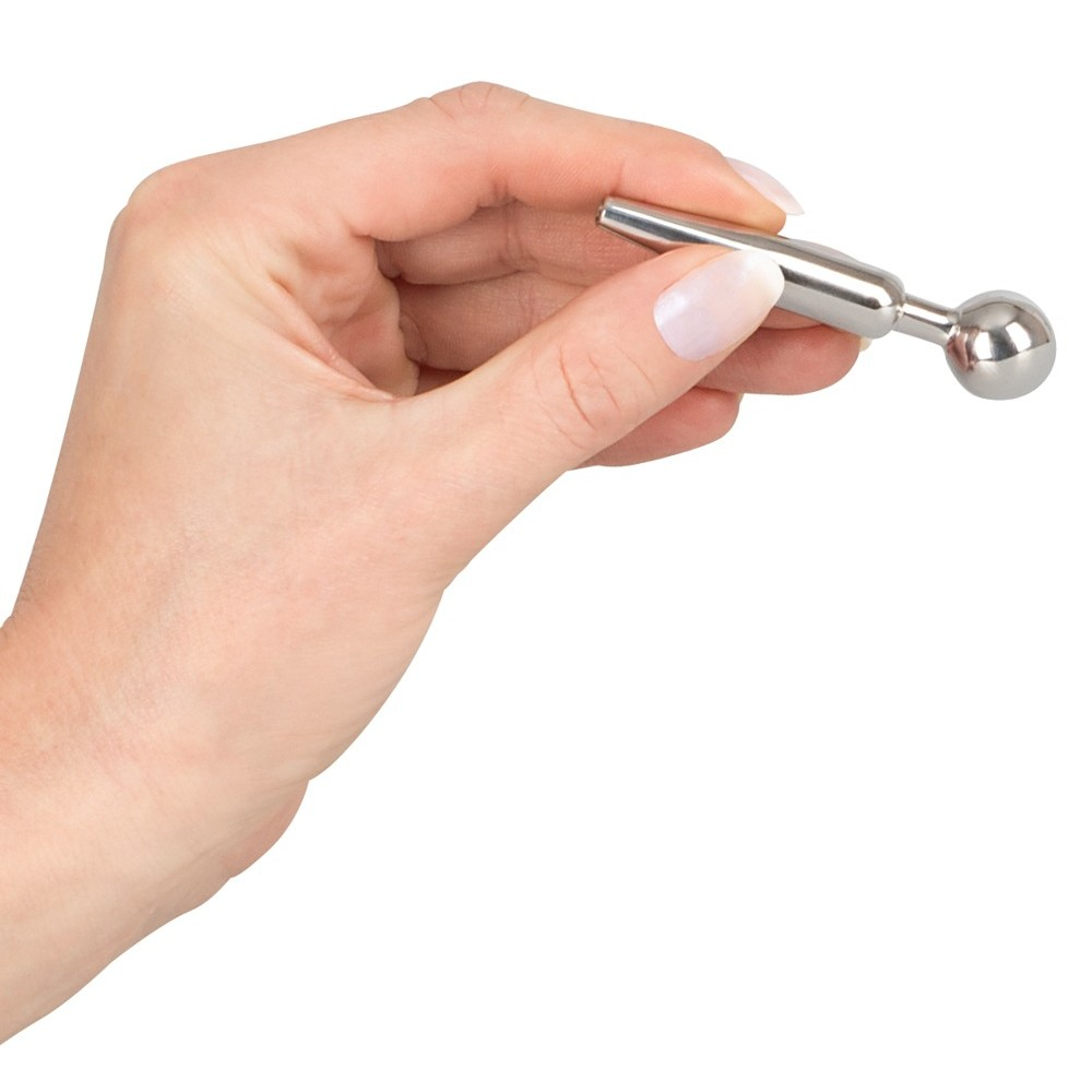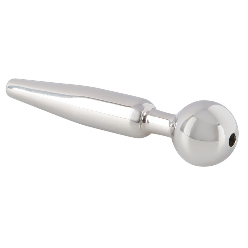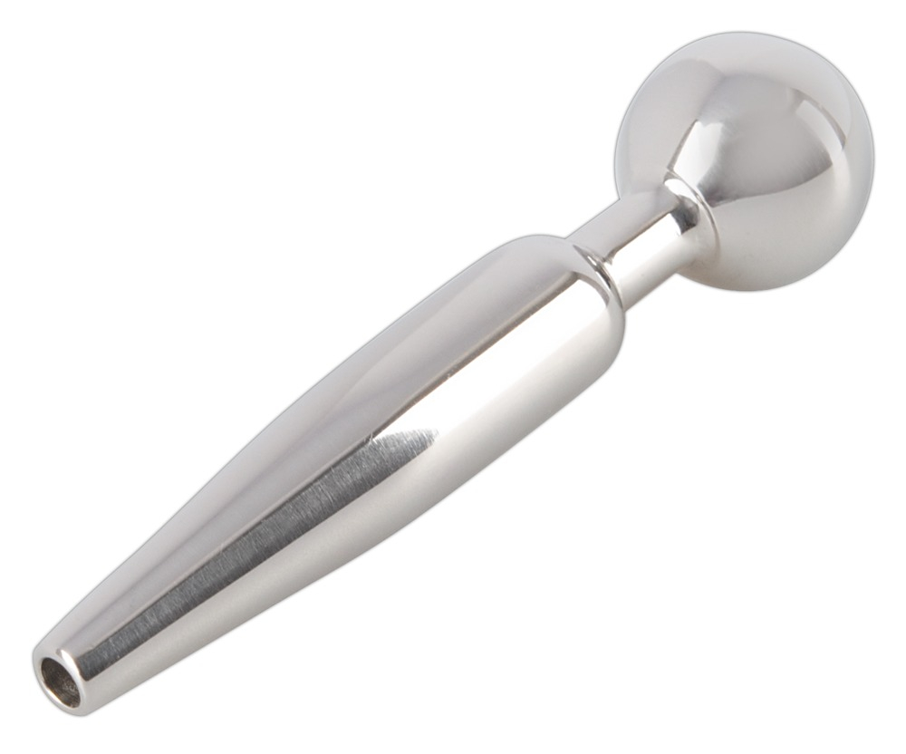 С пробкой для ежедневного использования! Полая пробка для полового члена серебристого цвета конической стимулирующей формы с шариком-пробкой. Идеально подходит для использования во время захватывающих игр со спермой и мочой.