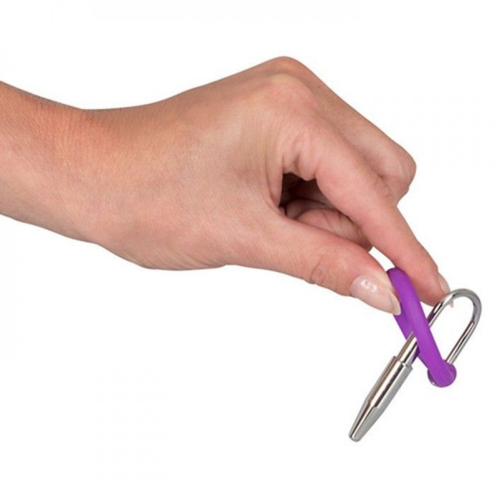 Уретральные удовольствия! Пробка для полового члена с силиконовым кольцом для головки для стимуляции и растяжения уретры. Компактный расширитель из металла, подвижное кольцо на головке из эластичного силикона для надежной посадки и удобной переноски. Бесшовная обработка.