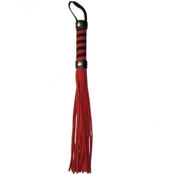 Строгая кожаная плеть для ролевых и BDSM игр красная