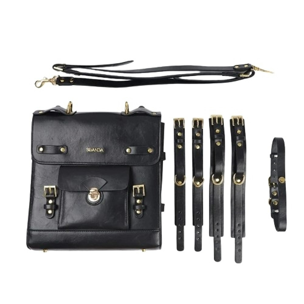 Сумка имеет разборные части, которые при желании превращаются в атрибуты БДСМ.