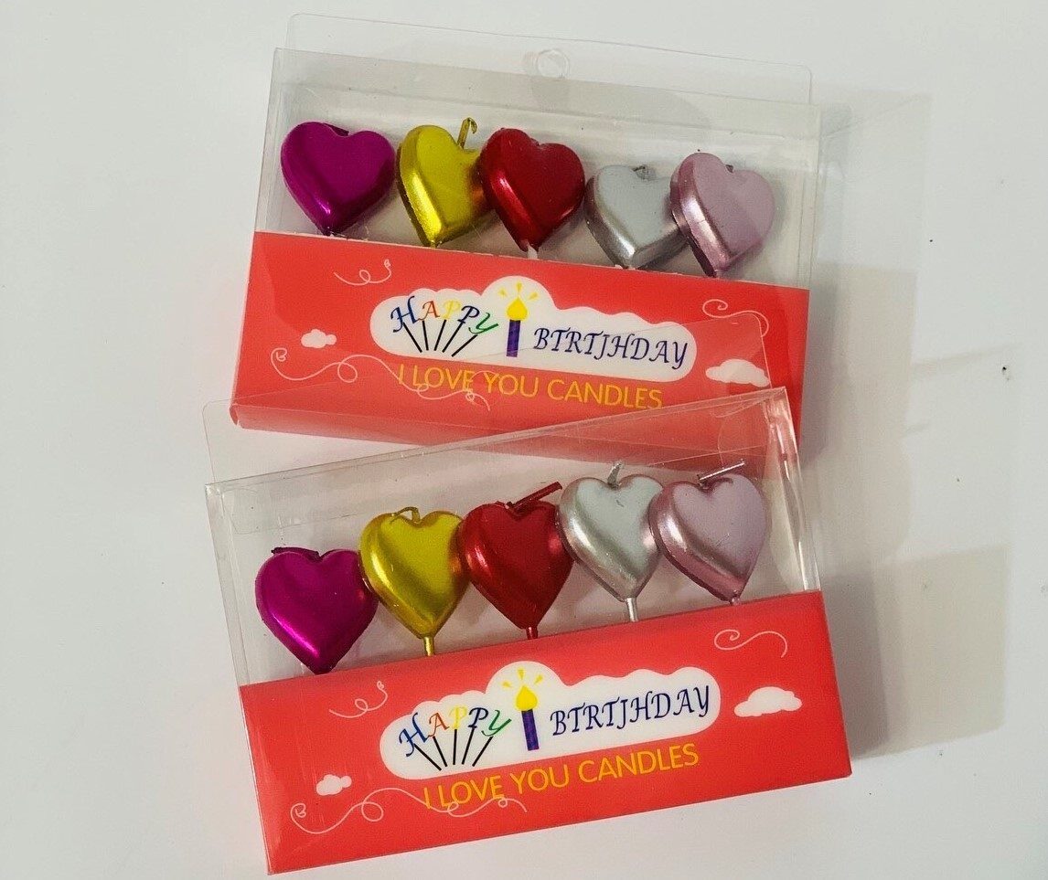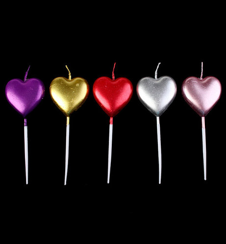 Свечи для торта в виде сердечек Heart в наборе 5 шт цвет ассорти