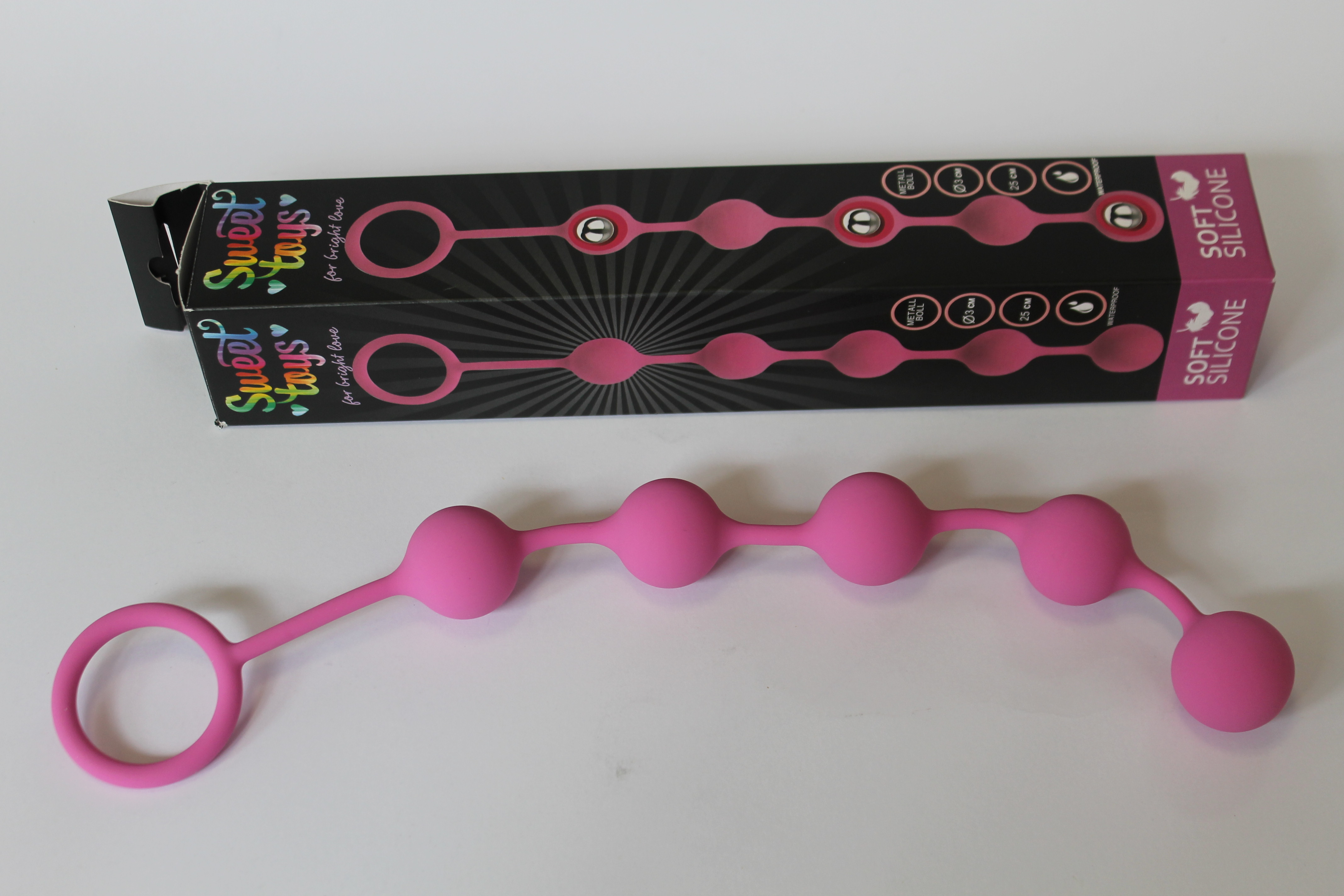 Характеристики Анальний ланцюжок силіконовий з металевими кульками з ручкою-обмежувачем SWEET TOYS Рожевий L 25 см d 3,1 см