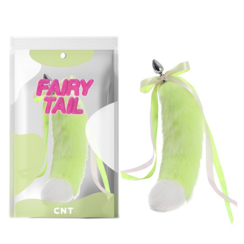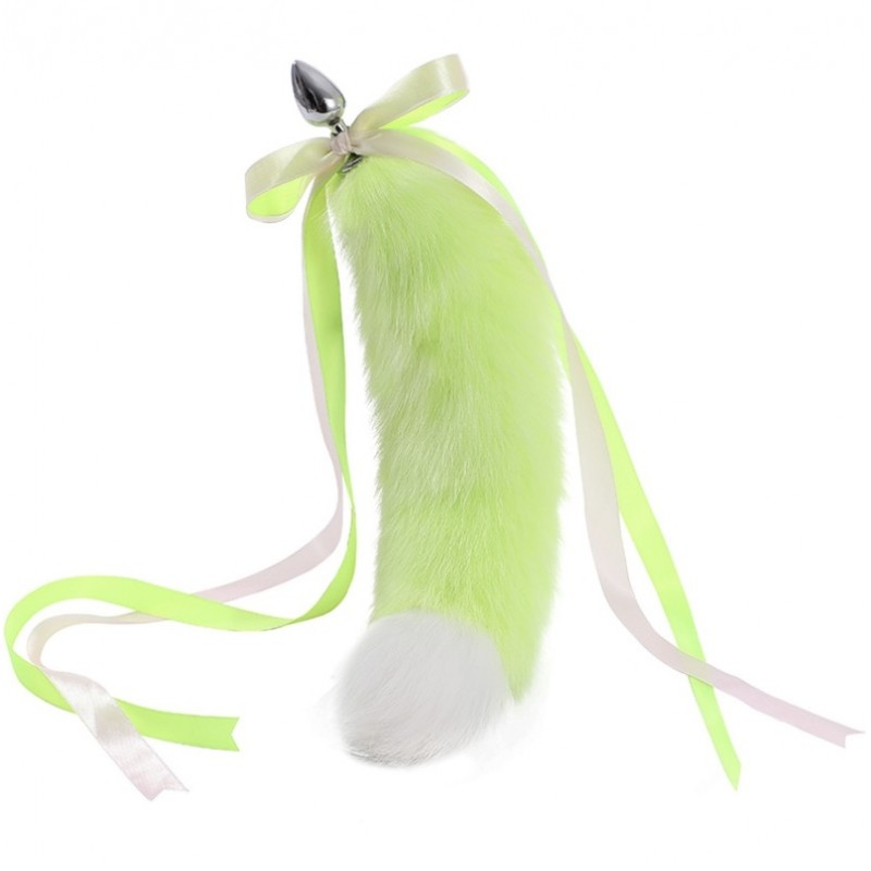 Анальний металевий затор з довгим хутряним хвостом Bicolor Fox Tail Plug салатовий