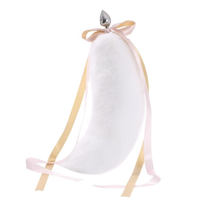 Анальний металевий затор із білим хутряним хвостом Detachable Fluffy Fox Tail Plug Snow