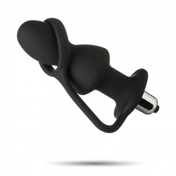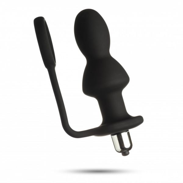Анальна плаг з вібрацією і ерекційним кільцем чорний