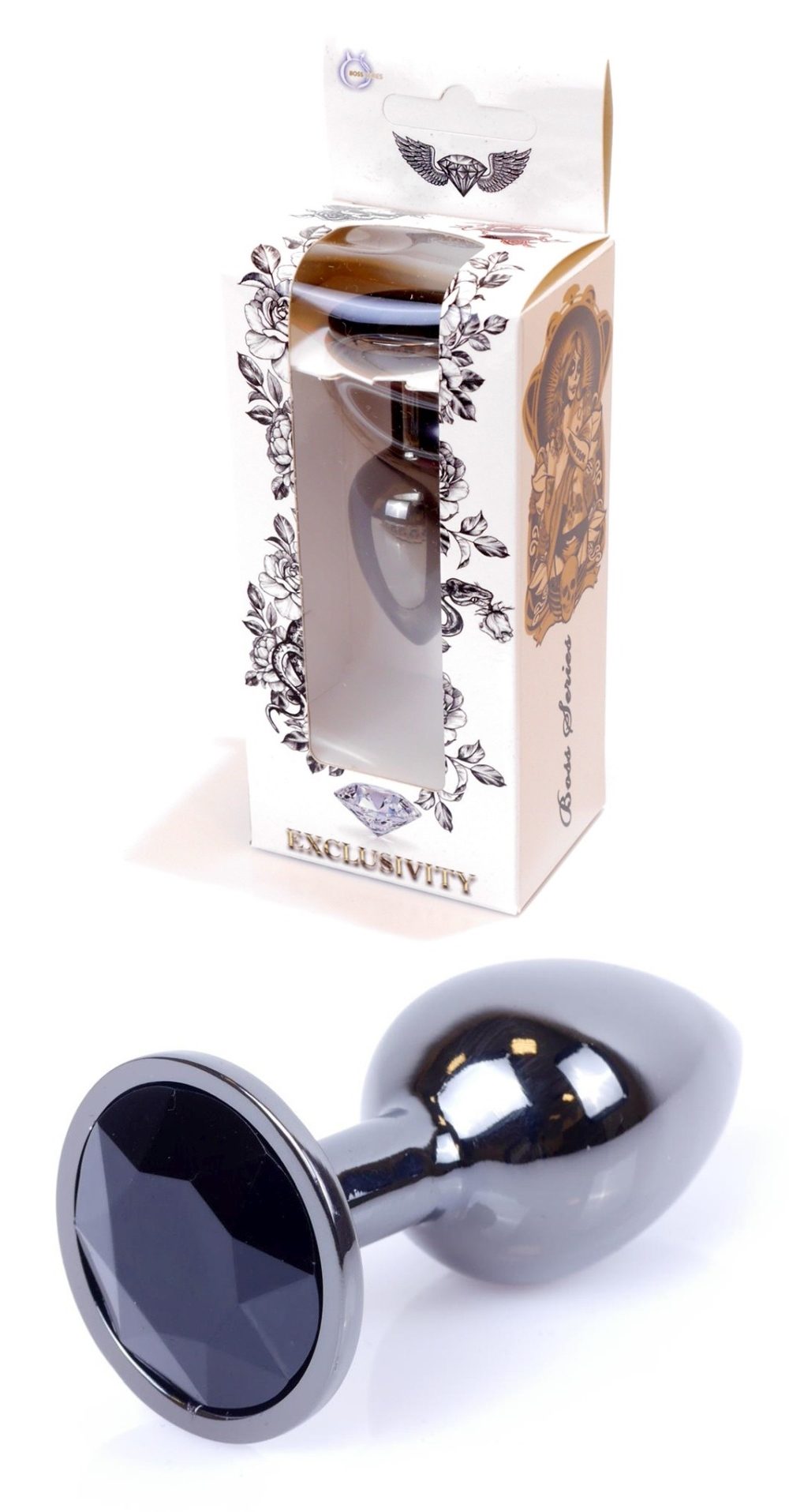 Анальна пробка S сріблястого кольору із кристалом чорного кольору BOSS of TOYS Jewellery PLUG