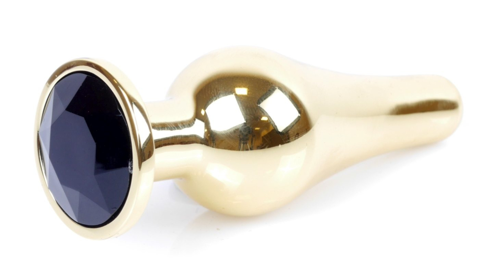 Анальна пробка золотистого кольору із кристалом чорного кольору BOSS of TOYS Jewellery BUTT plug