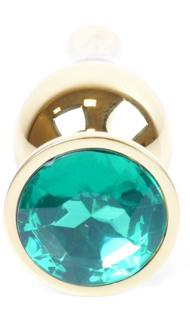 Анальна пробка золотистого кольору із кристалом зеленого кольору BOSS of TOYS Jewellery BUTT plug