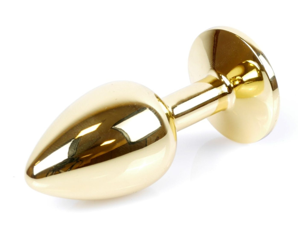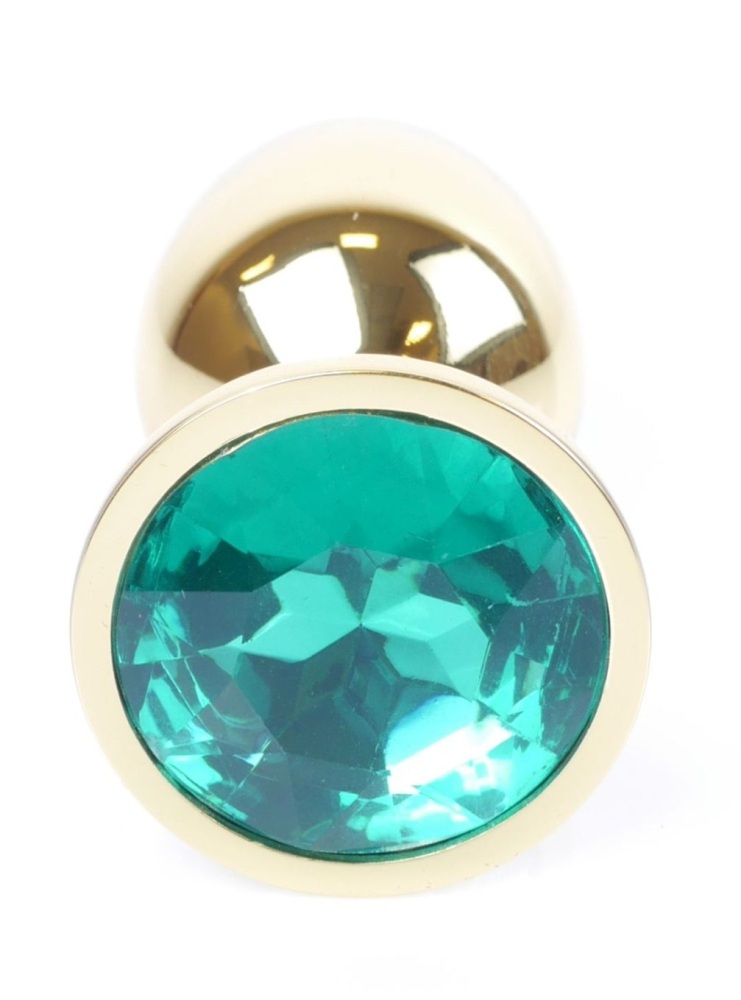 Анальна пробка S золотистого кольору із кристалом світло зеленого кольору BOSS of TOYS Jewellery plug