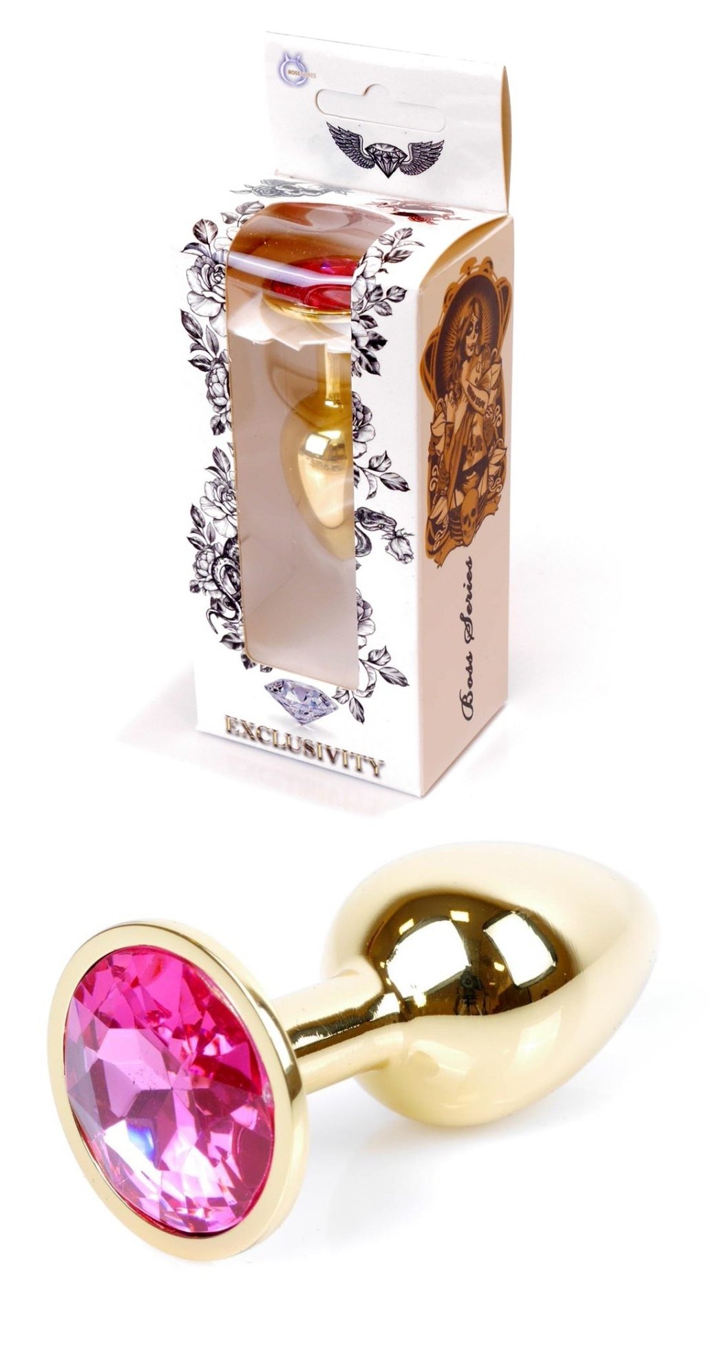 Анальна пробка золотистого кольору з рожевим кристалом BOSS of TOYS Jewellery plug