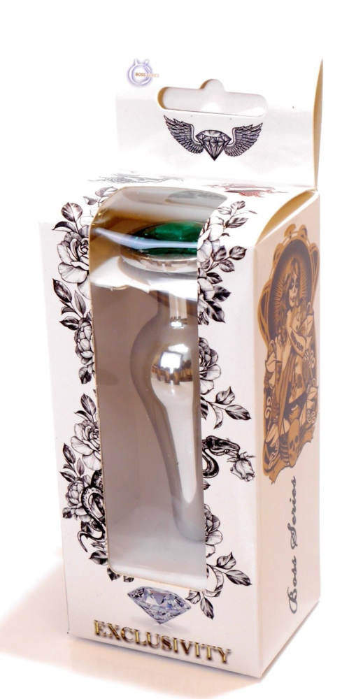 Анальна пробка сріблястого кольору із кристалом зеленого кольору BOSS of TOYS Jewellery BUTT PLUG