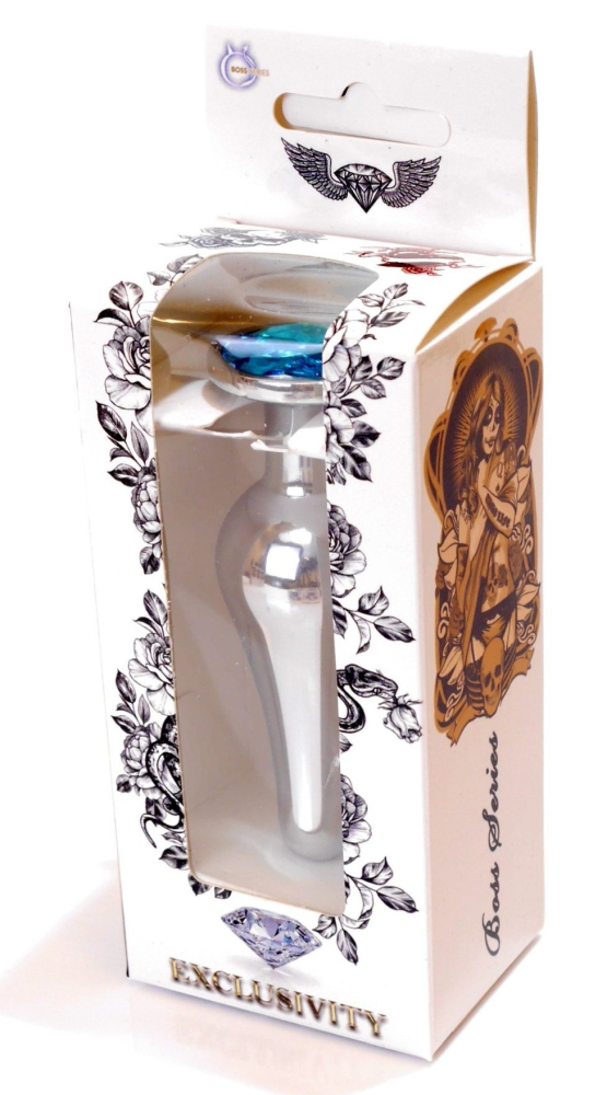 Анальна пробка сріблястого кольору із кристалом блакитного кольору BOSS of TOYS Jewellery BUTT PLUG