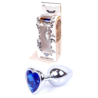 Анальна пробка S сріблястого кольору із кристалом у вигляді серця синього кольору BOSS of TOYS Jewellery plug