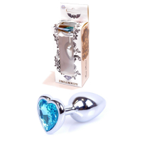 Анальна пробка S сріблястого кольору із кристалом у вигляді серця блакитного кольору BOSS of TOYS Jewellery plug