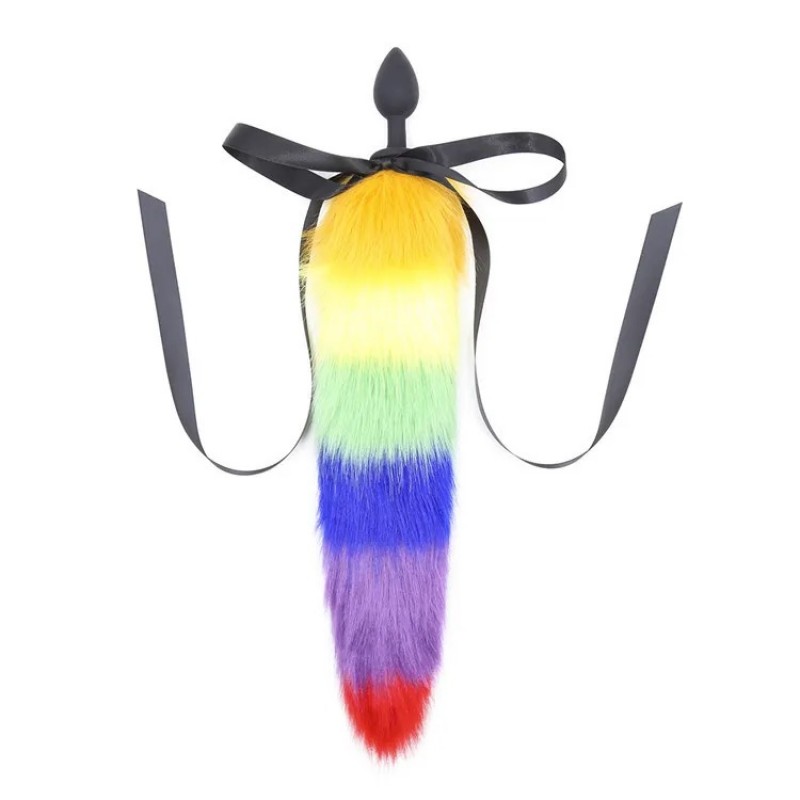 Анальний корок чорного кольору з райдужним хвостом Vscnovelty