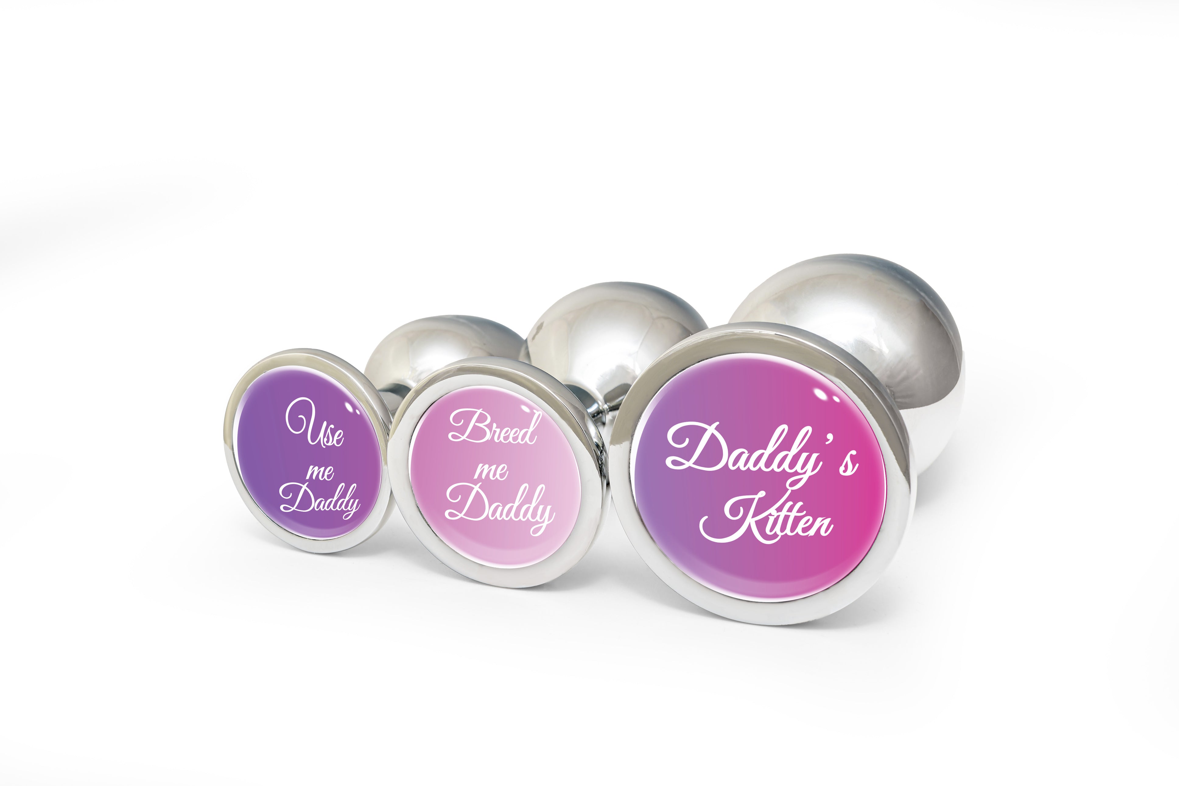 Анальна пробка металева срібляста з написом Use Me Daddy OKOVA розмір L