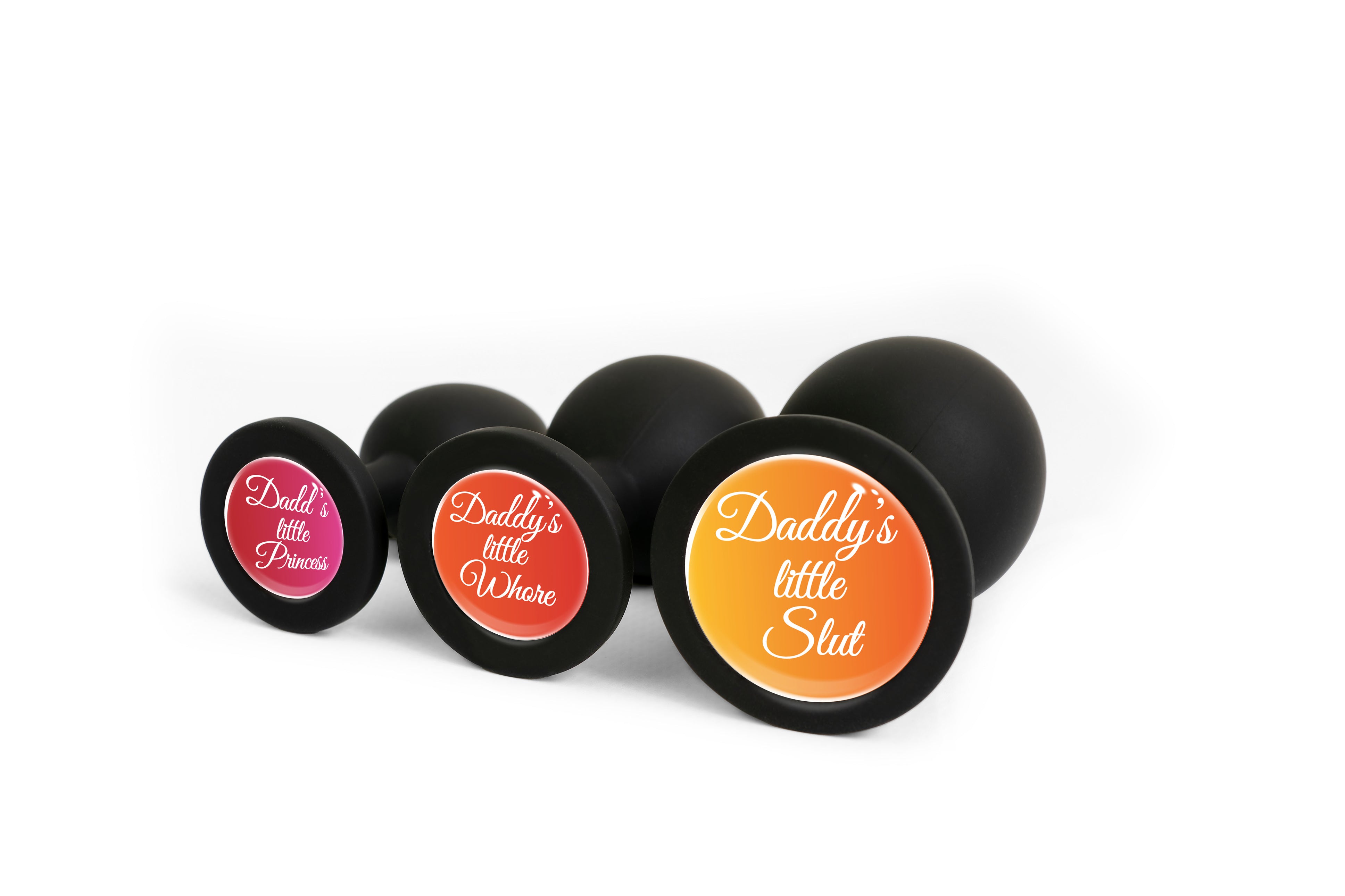 Анальна пробка силіконова чорна з написом Daddy's little Princess OKOVA розмір S