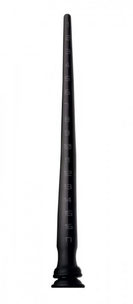 Анальна пробка довга для фістингу із загостреним наконечником силіконова чорного кольору довжина 500 мм