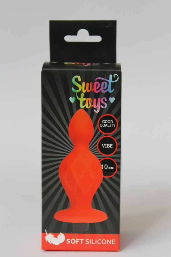 Характеристики Анальна пробка гранована силіконова з обмежувачем і вібрацією SWEET TOYS Червона L 10 см d 2, 5x4, 5 см