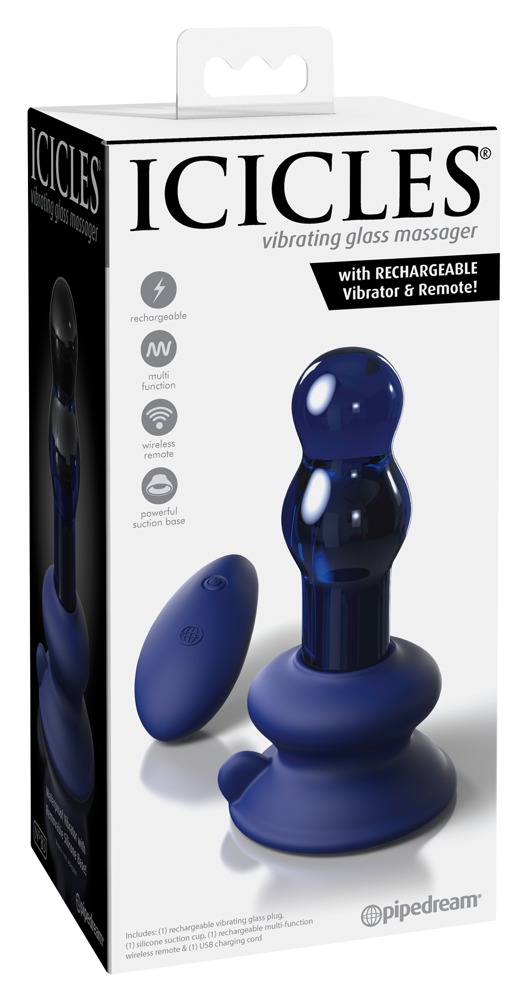 Характеристики Анальна скляна вібропробка зі знімною силіконовою присоскою з пультом ДК синього кольору Pipedream Icicles