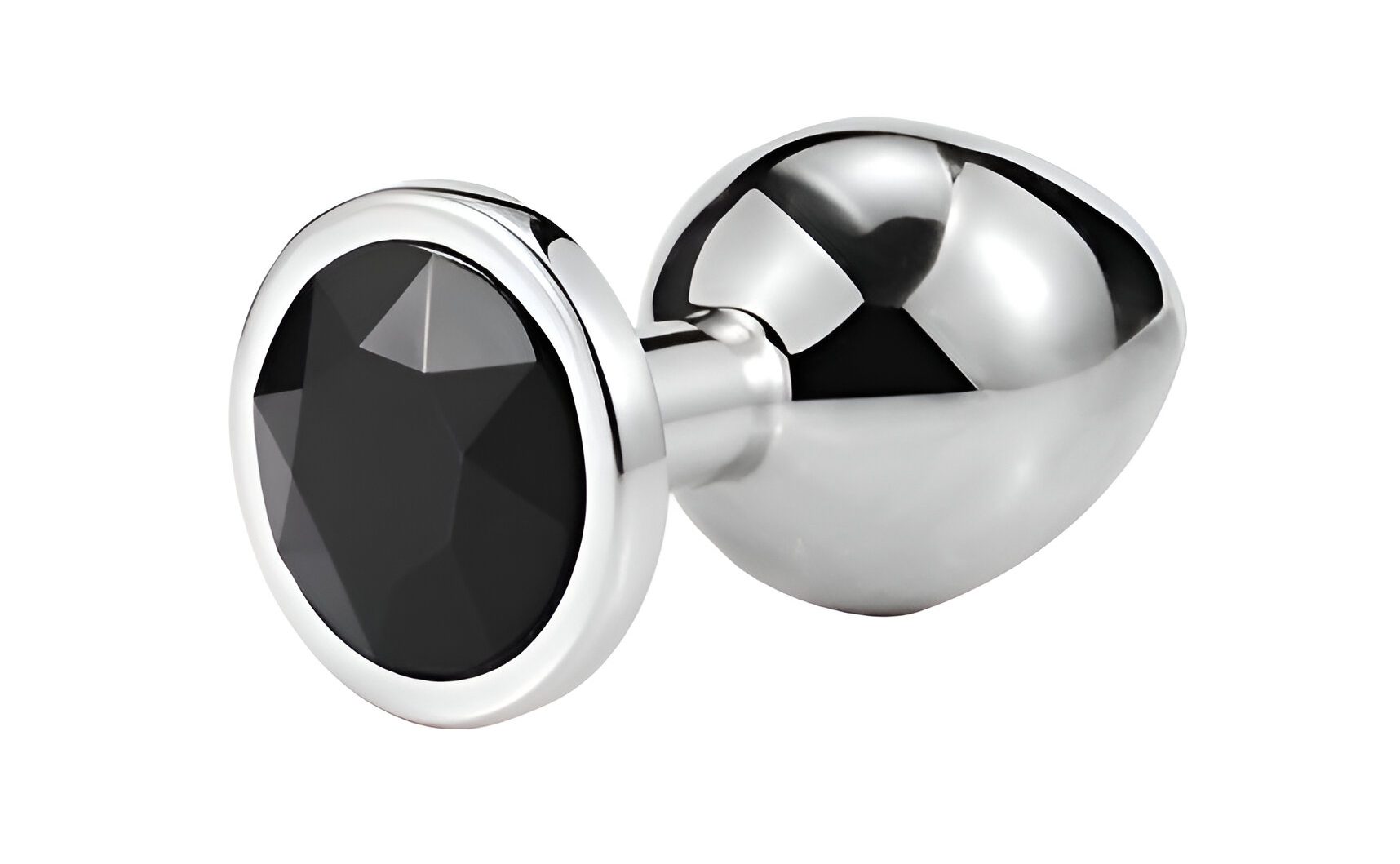 Анальна пробка з медичної нержавіючої сталі із чорним кристалом SKN модель MS80 розмір S