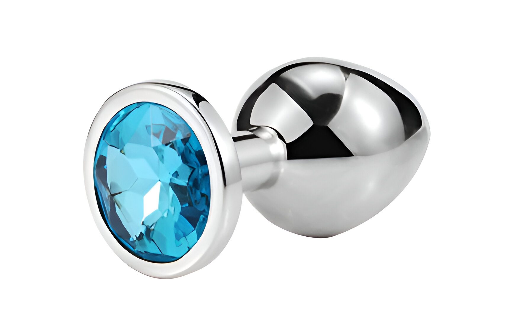 Анальна пробка із медичної нержавіючої сталі з блакитним кристалом SKN модель MS62 розмір S