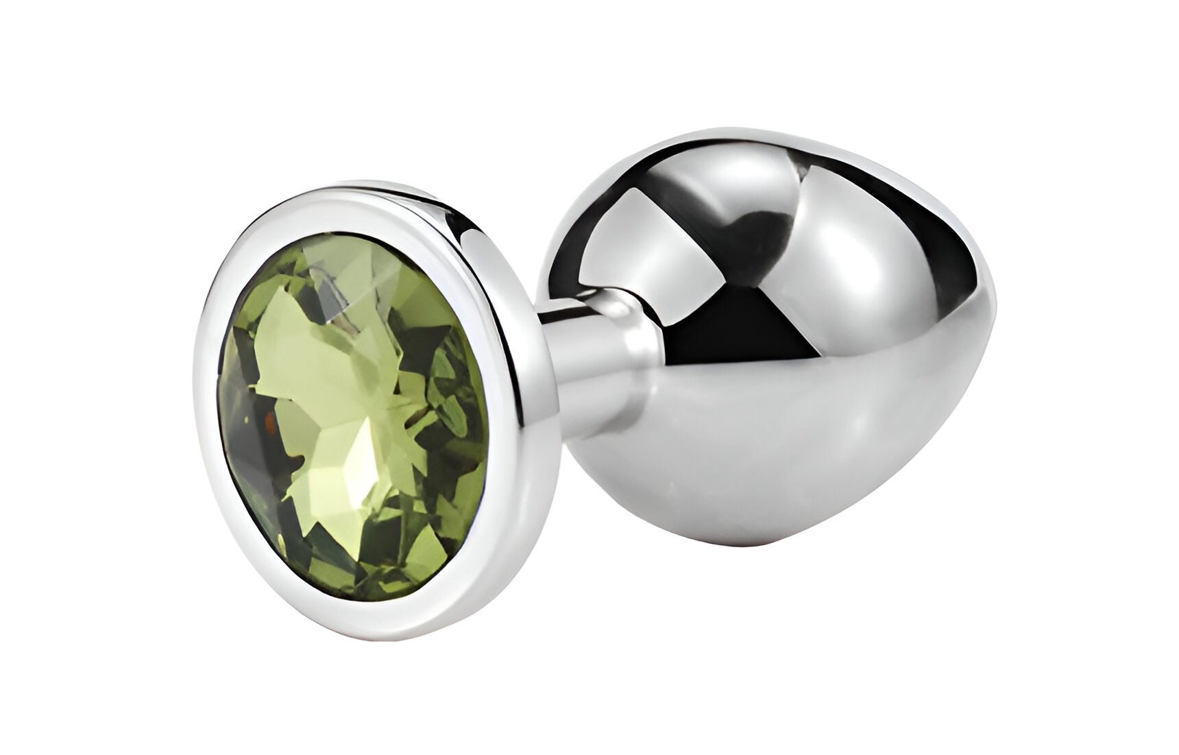 Анальна пробка з медичної нержавіючої сталі із салатовим кристалом SKN модель MS83 розмір S