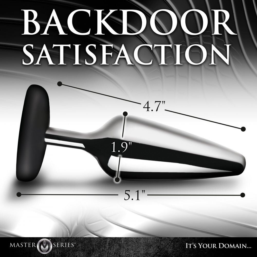 Анальна пробка із металу та силікону з написом на ніжці Slut сріблястого кольору Master Series Butt Slut