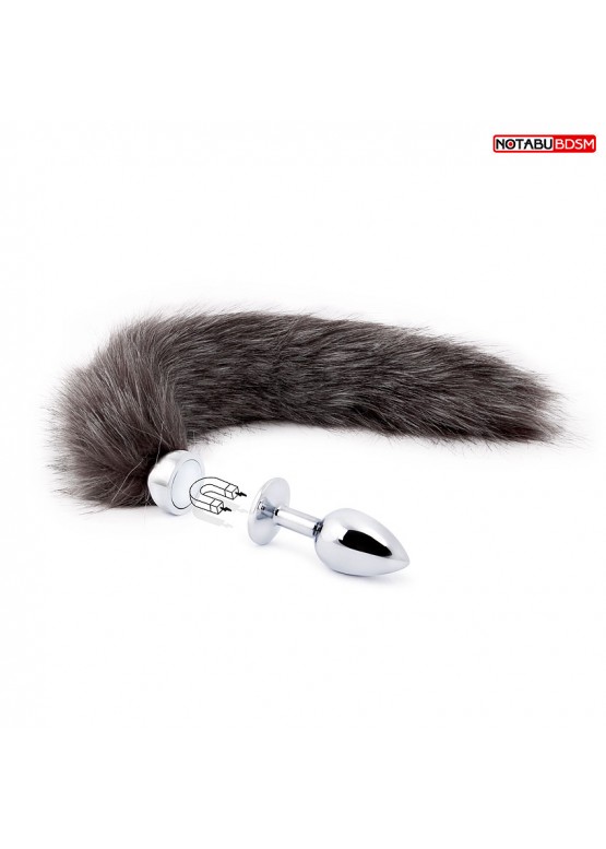 Анальна пробка з металу з хутряним хвостом (на магніті) сіра Notabu