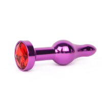 Анальна пробка металева Jewelry фіолетова L 10,3 см D 2,8 см з червоним кристалом