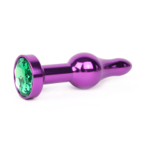 Анальна пробка металева Jewelry фіолетова L 10,3 см D 2,8 см з зеленим кристалом