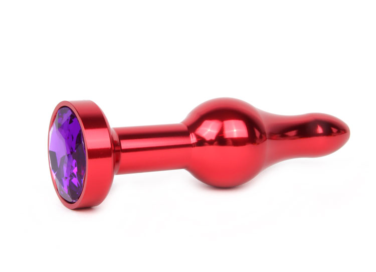 Анальна пробка металева JEWELRY Червона L 10,3 см D 2,8 см з фіолетовим кристалом