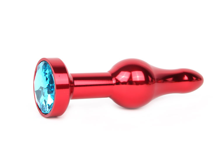 Анальна пробка металева JEWELRY Червона L 10,3 см D 2,8 см з блакитним кристалом