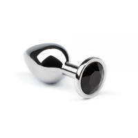 Анальна пробка металева з чорним камінчиком Crystal розмір L