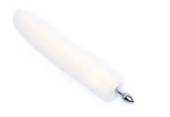 Анальна пробка металева з хвостом білого кольору SKN розмір XS