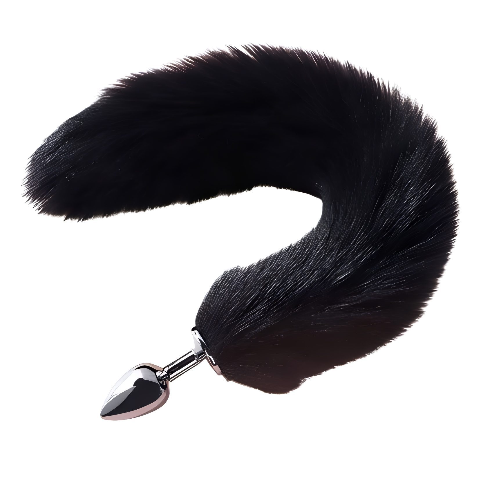 Анальна пробка металева з хутряним чорним хвостом SKN-L10