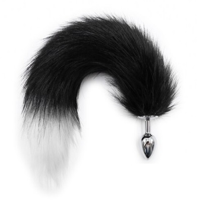 Характеристики Анальна пробка металева сріблястого кольору з лисячим хвостиком зі штучного хутра чорного кольору з білим DS Fetish Anal plug faux fur fox tail Black white polyeste розмір S