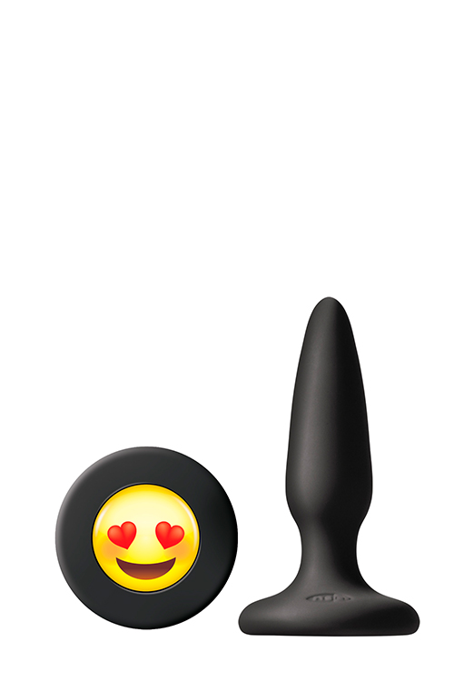 Анальний силіконовий затор чорного кольору із заглушкою смайликом NS Novelties Mojis ily