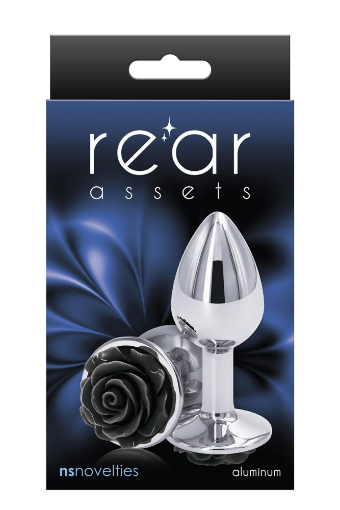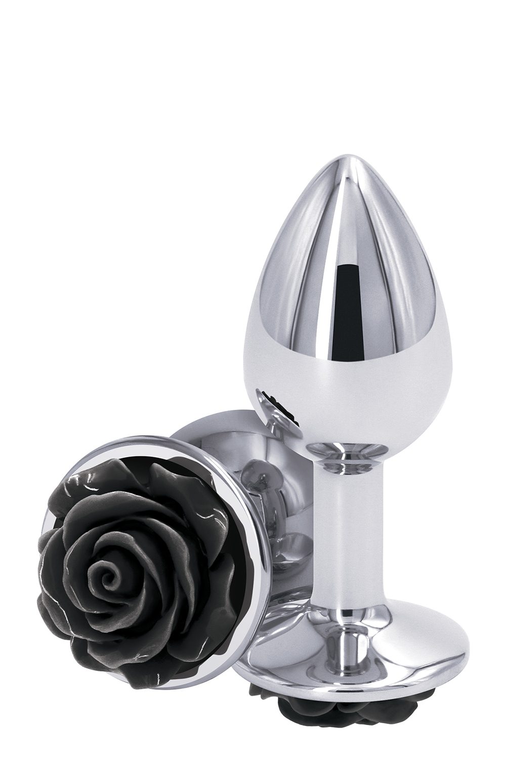Анальний металевий затор сріблястого кольору з чорною трояндою в основі NS Novelties Rose small