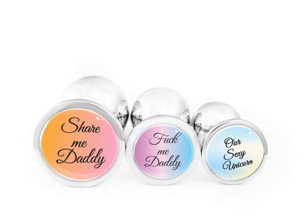 Анальна пробка силіконова чорна з написом Fuck me Daddy OKOVA розмір S