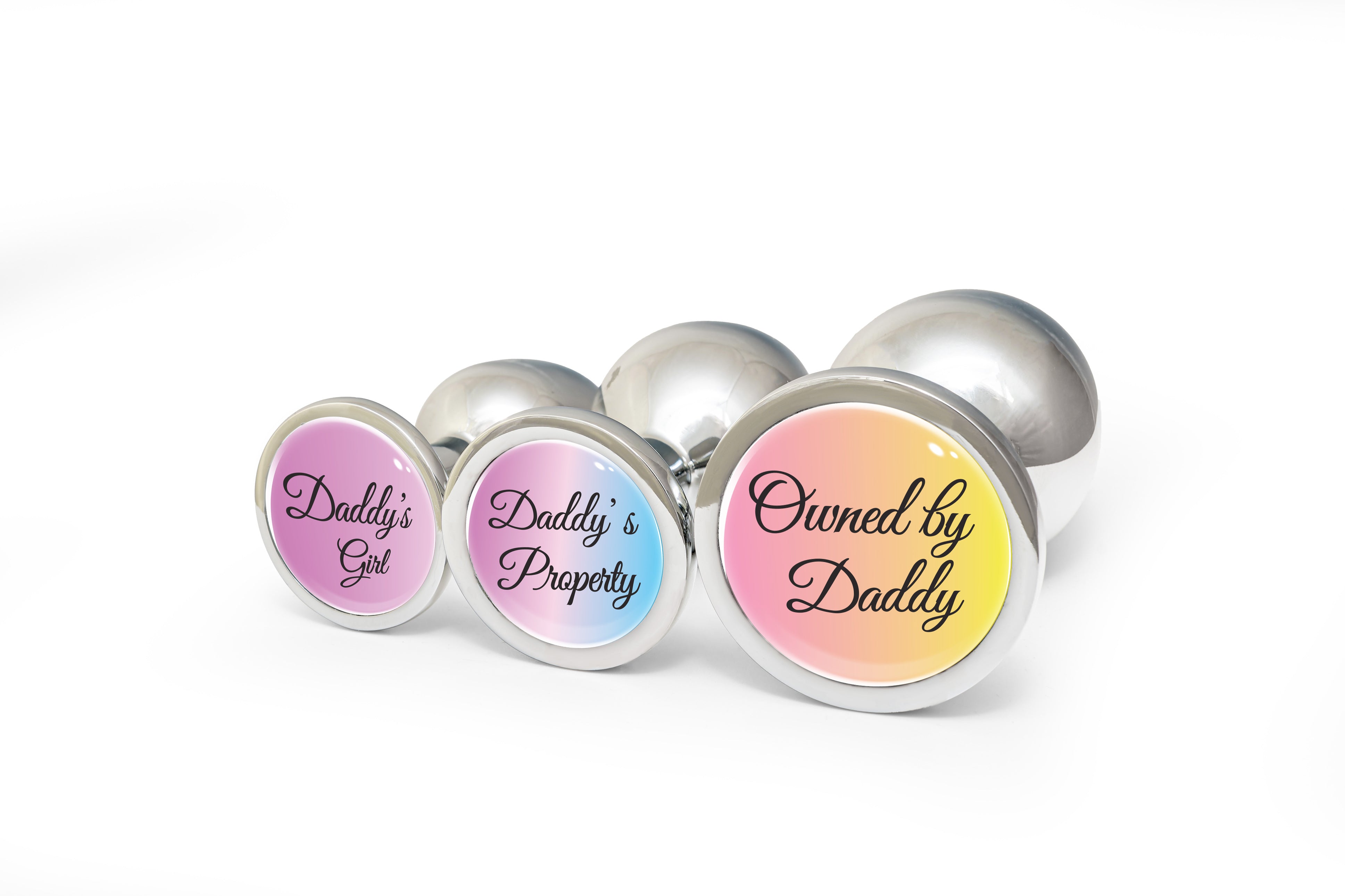 Анальна пробка металева срібляста з написом Daddy's Property OKOVA розмір S